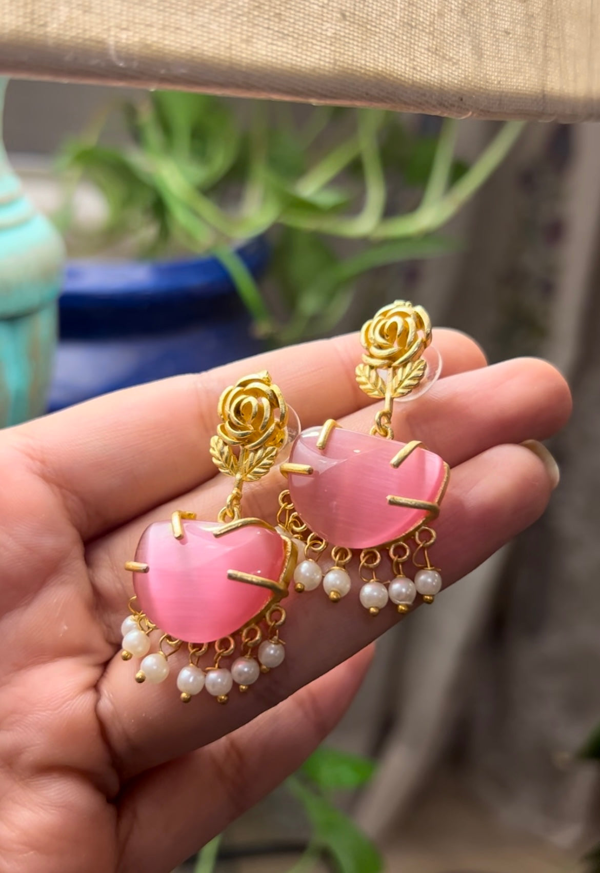 Elevate your ethnic collection with the Gulab Jhumki, available in pink, yellow, and pearl white. These handcrafted drop earrings are made from pure lightweight brass, adorned with natural stones and intricate pearl work. Designed to complement any kurti or ethnic wear, they offer a delicate yet striking accessory that blends traditional craftsmanship with everyday elegance.